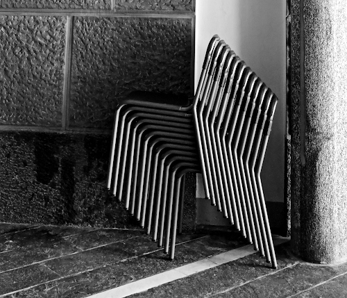 Foto dell'autore mavi80 candidata al contest fotografico sedia su Dizy. Data inserimento: mercoledì 10 aprile 2024. Titolo: Sedie impilate in chiesa