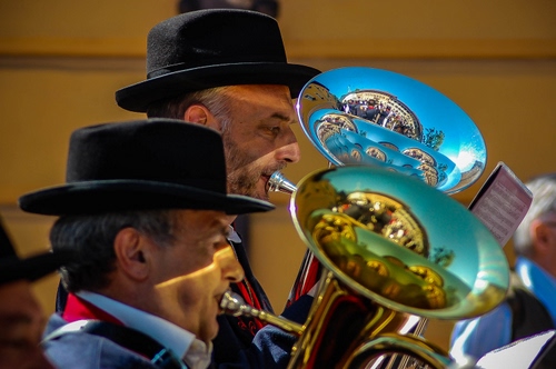Altri tag (senza riscontro): barba, cappello, tromboni, bandisti, nero, rosso, ottone, musicale, corni, giallo, divise, blu, celeste, tube, trombe, campane, fiato, ombre, ombra, persone.
